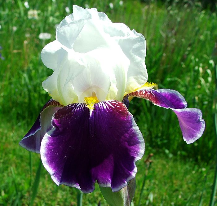 Mary Williamson 1936, M, 100 cm, g. biały, d. fioletowy amarantowy, brzeg biały, bródka pomarańczowy